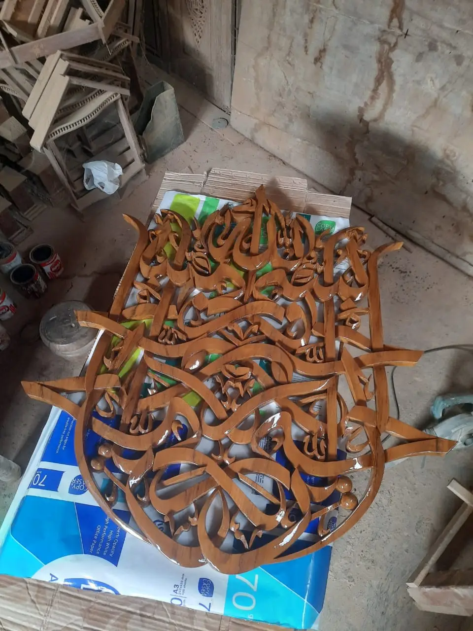 Adorn your wall with our elegant Bismillah calligraphy mirror frame, a harmonious blend of spiritual artistry and functional decor. Hand-carved with the sacred ‘Bismillah’ phrase, this frame adds a touch of divine beauty and reflection to any room. Crafted from high-quality teak wood, it serves as a meaningful focal point in an entryway, living room, or prayer space.